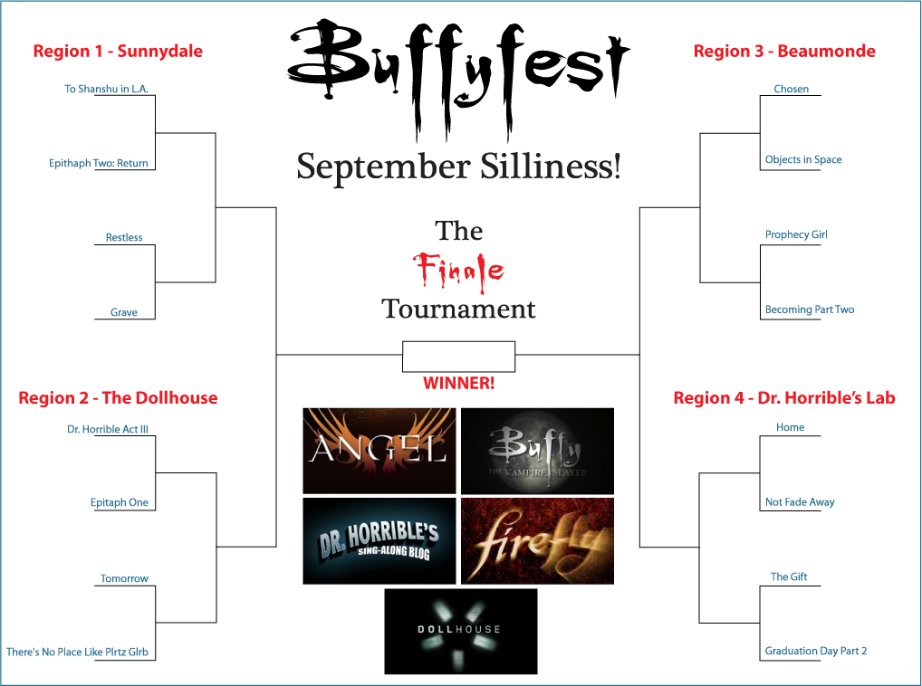 It's that time of year again! This will be the 4th Whedonverse Tournament that we've done now. Unlike some massive tourneys we have done in the past, this is a much shorter one as the question is "What is the favorite Season Finale of all Whedonverse shows?" Seem simple? Well, it's not!
